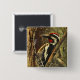 This button features fine art photography of the Yellow-bellied Sapsucker (Sphyrapicus varius), a medium sized woodpecker found in North America, Central America and the Caribbean islands. He is black and white with a red head, red throat and a yellow breast and upper belly. He is carrying food in his large beak for his newly hatched brood who are nesting inside a hollowed brown tree trunk in the woods.