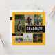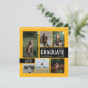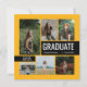 Stylish graduation announcement card and party invitation features six senior photos with "GRADUATE" as a large focal point. Personalize the modern custom text with your grad's name, school, and class year. This two-sided card design includes graduation party invitation wording on the back. Customize the colours of the picture frame and boxes on the front and the boxes on the back to match your school colours or coordinate with the photography. Available in the most popular and common school colour combinations - green/yellow, red/yellow, crimson/gold, blue/yellow, navy/gold, black/gold, purple/yellow, red/silver and red/black. Matching products and other colours available.