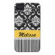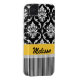 Yellow Black Damask Stripes Your Name Case-Mate iPhone Case