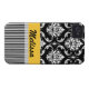 Yellow Black and White Damask Pattern Design with stripes and your name in a pretty script font. Damask Gallery© Other colours and styles available in our shop at www.zazzle.com/DamaskGallery*