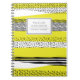 A customizable notebook featuring varieties of hand drawn patterns with yellow accent. Personalize the notebook by adding your name and short text. You can also remove the text and the tag if you only want the pattern.