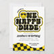 Yellow Black Retro One Happy Dude 1st Birthday Invitation