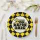 Yellow Black Retro One Happy Dude 1st Birthday Paper Plate