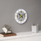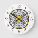 Elegant 8" wall clock with a black & white damask pattern accented with yellow. The numbers are in a fancy size varying pattern to break up the typically uniformity that most clocks display.