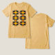Rows of mandala designs in yellow and blue with some black elements are featured in a vertical pattern, with some influence from modern pop art and hippie art. Pictured here on a "mustard" Bella+Canvas Tri-blend t-shirt in Classic Printing, with other colours and styles available. This is a positive, creative addition for casual, everyday wear (from work/school to sports to relaxing/socializing/running errands around town), but also works for somewhat dressier occasions, given the artistic themes, and contributes to a feeling of being "put together," with a personalized style. Especially for those who work remotely and/or spend a lot of time at home, dressing can be fun again.
