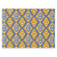 Psychedelic tablecloth with weird eye pattern indigo blue and honeycomb yellow colours. This fun eclectic quirky pattern resembles retro modern mid-century style due to its geometric shapes.