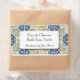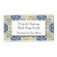 A custom label with block and script letters on an antique tile art pattern in blue, white and yellow, with a handpainted feel. Customize it to change fonts, change label size or background colours, even save your design for later.
