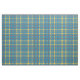 Linear plaid pattern in blue, green and yellow.