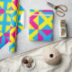Yellow Blue Pink Square Geometric Pattern Wrapping Paper
