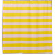 Chic yellow and blush pink shower curtain featuring a pastel stripe pattern. Perfect for adding a modern rustic vintage touch to your spring and summer bathroom decor.