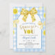 Yellow Coquette Bow Lemon Baby Shower Invitation, Can't Wait To Squeeze You Baby Shower Invite, Editable Blue Plaid Baby Shower
