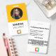 Custom yellow faculty photo ID badge. Add any business and employee name, photo, logo, address, phone number, website and barcode. Available in multiple colours for your business identity needs.