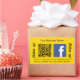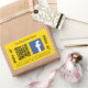 A bright yellow background. Personalize and add your business name, your own qr code to your Facebook account and a text. Black text. With the text x2: Follow us!