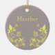 Sweet and dainty Butterfly Floral Ornament with a muted dusty grey background and light yellow butterflies and floral vine embellishments. This elegant floral ornament is chic with girly flair and would make a lovely decorative gift! Easy to customize, simply add the personalized text of your choosing in the text fields provided. Click on the "Customize It" button to find additional personalization options.