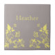 Sweet and dainty Butterfly Floral Tile with a muted dusty grey background and light yellow butterflies and floral vine embellishments. This elegant floral tile would complement any decor! Easy to customize, simply add the personalized text of your choosing in the text fields provided. Click on the "Customize It" button to find additional personalization options.