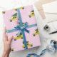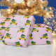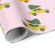 Yellow Cab Taxi Fir Tree Pattern Pink Christmasr Wrapping Paper