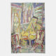 Are we in New York or Paris? The balcony suggests the latter. Is it jazz that will be played, or something from the classical repertoire? A cello is propped against the piano bench. Two ornate Chippendale chairs face us. The palette includes yellow, blues, greens, and purples. White brushstroke lines and black pen lines of acrylic ink define and outline the forms. The artist, Peter Stilton, is internationally known. His paintings and sculptures are in private and corporate collections all over the world…from Tel Aviv to Stockholm, including a commission for the Saudi royal family’s summer palace Peter was the first American to have a one-man show at the Sorbonne (University of Paris).