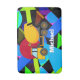 Yellow cement truck on colourful geometric shapes with personalized child's name in white.