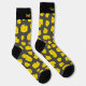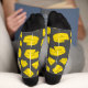 Yellow cheese slices. Seamless pattern. Custom background colour. Custom top stripe colour. Custom text on each sock.