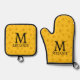 Yellow cheese slice print custom monogram oven mitt & pot holder set