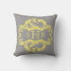 Elegant and sophisticated Chic Damask Mongram Pillow featuring a soft grey background and a stylish damask flourish embellishment in yellow. This modern design is easy to customize with your own text. Click "Customize It" to find more personalization options.