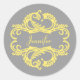 Elegant and sophisticated Chic Damask Stickers featuring a soft grey background and a stylish damask flourish embellishment in yellow. This modern design is easy to customize with your own text. Click "Customize It" to find more personalization options.