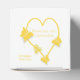 Wedding favour box yellow coloured butterfly heart design. Customise this yellow coloured wedding favour box with your wedding details. Should you require any help with customising then contact us through the link on this page. Yellow coloured butterfly heart design personalised wedding favour box