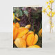 Blank greeting card featuring vibrant image of blossoming yellow crocuses. Perfect for spring greetings.