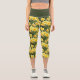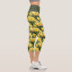 Exercise in style with these bright and cheery floral cropped leggings. The design features a pattern of yellow spring daffodils with an olive green waistband. Designed by artist ©Susan Coffey.