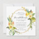 Modern Boho Chic Graduation square invitation begins with a thin double gold oval frame. Pale yellow daffodils with deep red centres decorate the gold frame. A variety of green leaves and vines combine with the daffodils to create the rustic Boho vibe. The greenery varies from pale yellow-green to deep green. The invitation back is a deep citroen yellow giving the graduation invitation a very hip colour palette. In addition to the invitation and mailing accessories, party supplies are also available. These include plates, napkins and welcome banners. You should see a link to the Yellow Daffodil Graduation collection on this page. If you don't see the link or you need help with a template, please contact me.