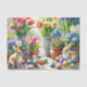 This springtime tissue paper showcases vibrant Easter eggs nestled within a floral garden, complemented by playful rabbits and delicate spring blooms. Ideal for gifting, crafting, or Easter party decorations, this cheerful holiday paper also allows for the artwork to be transferred to other products.