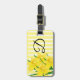 This yellow colour luggage tag will allow you to find your luggage quickly. The print features a yellow and white stripe with an overlay of graphically designed daffodils/ Add your monogrammed initial to the front with name and contact information on the back. Buy for yourself or give a set of travel tags as a gift.