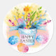 Yellow Daffodils Pink Blue Eggs Happy Easte Classic Round Sticker