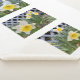 A White Small Sherpa Blanket, with 3 differen’t Pictures of Beautiful Yellow Daffodils, on it.