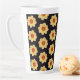 Chill out with a coffee latte in this ceramic mug that features a wrap-around photo image of a yellow Dahlia flower on a black background printed in a repeating pattern. A lovely, floral design! Select your latte mug size.