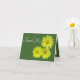Stunning photograph featuring a close-up cut-out of three beautiful yellow daisies contrasted against a lime green colour background. This card is offered in a number of different colour backgrounds. The daisies cover the front of this card which can be used as a thank you card, a birthday card, or any other card of your choice. Customize it with your text and/or pictures to make it one-of-a-kind!
