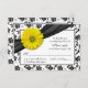 The text on this black and white floral damask yellow gerbera daisy wedding RSVP reply card is fully customizable. To change it use the personalize option. For more extensive text changes, such as changes to the font, font colour, font size or text placement, use the customize it option. Note: on the back this yellow gerber daisy flower reply card there is a spot for guests to make a note of any special dietary requirements or food allergies. NOTE: This is a flat, printed design without any raised or 3D embellishments.