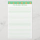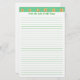 Painting of a pattern of yellow daisy flowers on a light green background, is printed across the top of custom stationery. A placeholder is there below it to add your personalized message. The body is lined for easy writing. It's a fun design for spring.