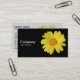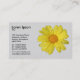 A business card template with an isolated photo image of a yellow daisy after a rain shower. Suitable for a variety of businesses. Ready to be customized. The company details are on the front with name and contact details on the reverse side. Background colours are customizable.