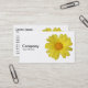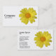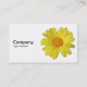 A business card template with an isolated photo image of a yellow daisy after a rain shower. Suitable for a variety of businesses. Ready to be customized. The company details are on the front with name and contact details on the reverse side. Background colours are customizable.