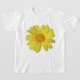An isolated photo of a yellow daisy photographed after a rain shower and shows the fresh rain droplets on the petals