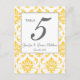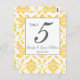 Table Number Cards with white and yellow damask and grey accent colours. Layout Design by Elke Clarke©. Graphics licensed. Customize with your information and make one card with each number and add one card per number into our cart. Beautiful yellow and white damask background can be matched up with any colour by selecting "customize it" and then you can change the colour of the text, the frame line and the background box to match your wedding colour scheme.