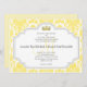 Yellow Damask Wedding Invitations Monogram M. These yellow damask wedding invitations include a princess crown within an arched frame with template text for you to customize. You may change the font of the text by clicking "customize it" and using the custom tools to the right of the invitation image. If you need help feel free to click on "Contact" and email a request.