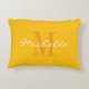 Bright yellow decoration pillow with classy name monogram. Elegant accent pillow for living room, bedroom, office, nursery, kid's room and more. Stylish home decor. Trendy cushions for sofa, couch and bed in bedroom. Chic accessories for your interior. Colors can be changed.