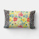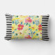 Black and White Striped Yellow Floral Pattern Reversible Lumbar Throw Pillow