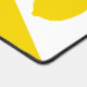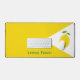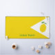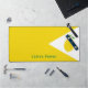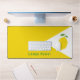 A yellow desk mat with a lemon in a white triangle and green customizable message. A nice office decoration or gift for a foodie friend!