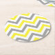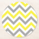 Yellow, Dk Grey Wht Large Chevron ZigZag Pattern Round Paper Coaster