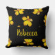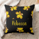 Yellow dry leaves custom name black throw pillow