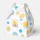 This fun party favor box features a blue and yellow polka dot print with bubbles and yellow rubber ducks. Matching items available in the 'Yellow Duck Bubble Bath' collection.