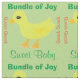 Adorable Yellow Ducky with orange beak and feet ducky themed nursery room pattern on a green background. With the wording in green text, Bundle of Joy, Sweet Baby. Quack Quack is written in orange text. Original Artwork by TamiraZDesigns.